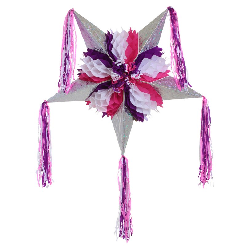 Piñata2GO - 5-Point Star Shaped Foldable Piñata Purple, White and Pink